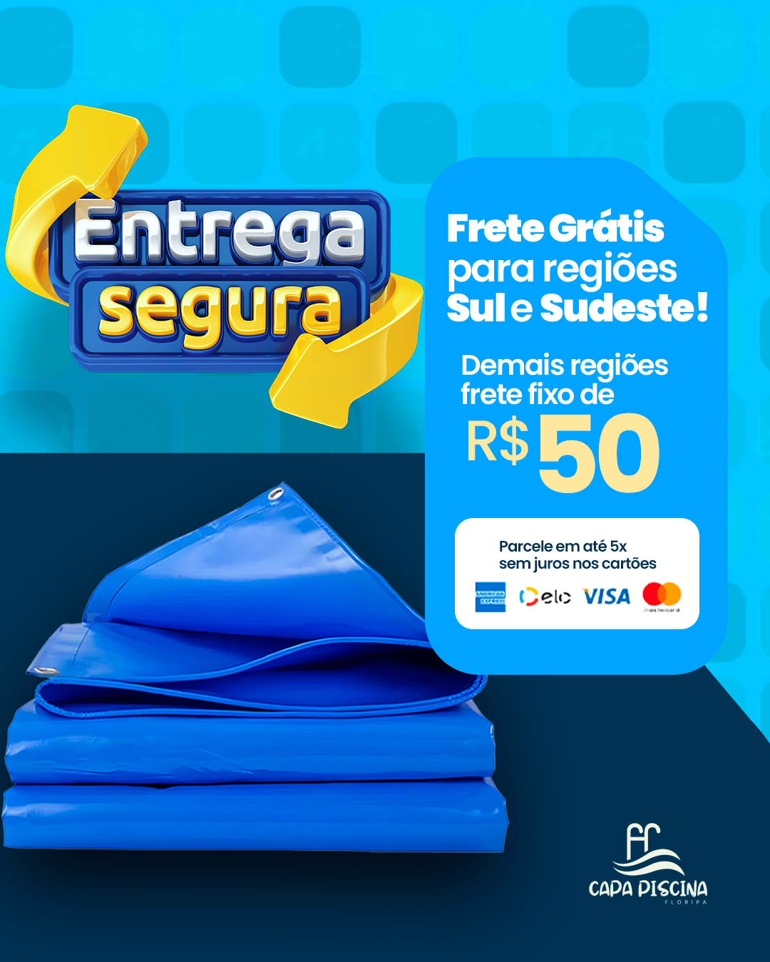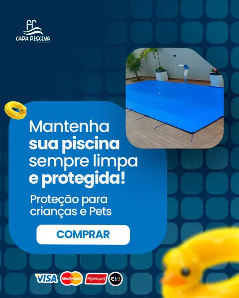CAPA DE PISCINA 7,5X4,5 MTS 300 MICRAS, SUPORTA ATÉ 100 KGS DE PESO, COM RALO DE DRENAGEM