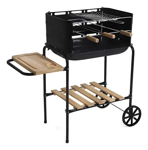 Feita de: aço. | Área de cozimento: 46.7cm x 16.7cm. | Grade destacável. | Inclui mesa lateral. | Medidas totais da grelha: 82cm x 75cm x 38.5cm.